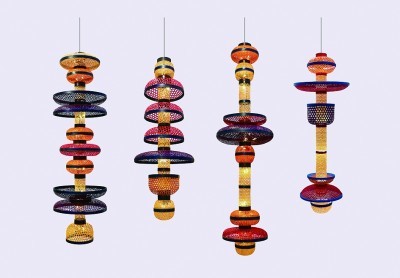 尤值一提的是,该套竹编产品所展现出的通盘“摩登”感,不仅有赖于造型的高明蓄意,还离不开颜色的尽心营造。作品接受毛竹与橡木算作基础材料,为了与竹编的高雅光辉酿成对比,蓄意师斗胆鉴戒曾风行于意大利的孟菲斯派颜色作风,接受高富足度的红、黄、蓝、紫等情感讳饰构件,冲破了竹、木料料固有的千里静气质,使作品呈现出符号灵动的视觉后果。如在“平行竹编吊灯”中,各色竹篮形灯罩呈层叠陈列,以重色边框进行分割,灯罩之下是包裹光源的原色竹编筒。白昼,当阳光穿透吊挂于窗边的吊灯时,斑斓的光影会在墙面与大地上编织出抽象的几何图案;夜晚,当灯光亮起,符号的颜色仿佛被一少量燃,大红、明黄、宝蓝、绛紫在光照下愈发通透,而原色竹编筒滤出的轻柔光晕,则为室内添上了一抹温润的底色。