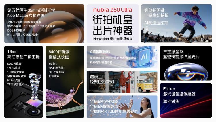 努比亚Z80 Ultra延续三主影相像系统策画,以“35mm+18mm”定制街拍双焦段为中枢,搭配6400万潜望式长焦主摄,袒护多场景拍摄需求,同期通过实体按键与AI工夫晋升拍摄方便性与成片恶果。